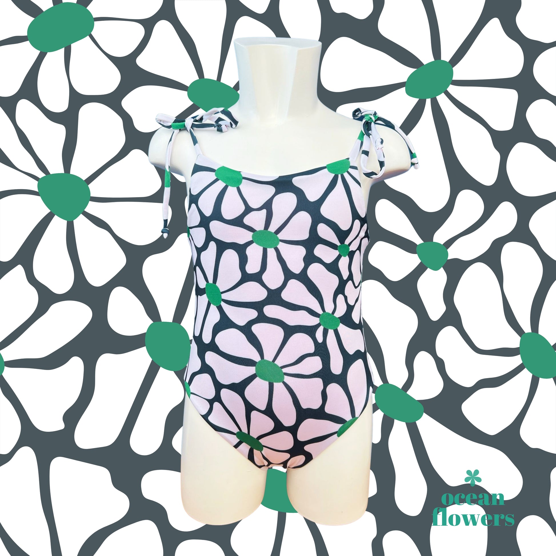 Ocean Flowers are made with high-quality materials so they can be passed down from generation to generation. However, there are a few precautions to keep in mind: carefully hand wash with cold water to remove salt and chlorine residues. Let the swimsuit dry in the shade and only store it when it is dry.