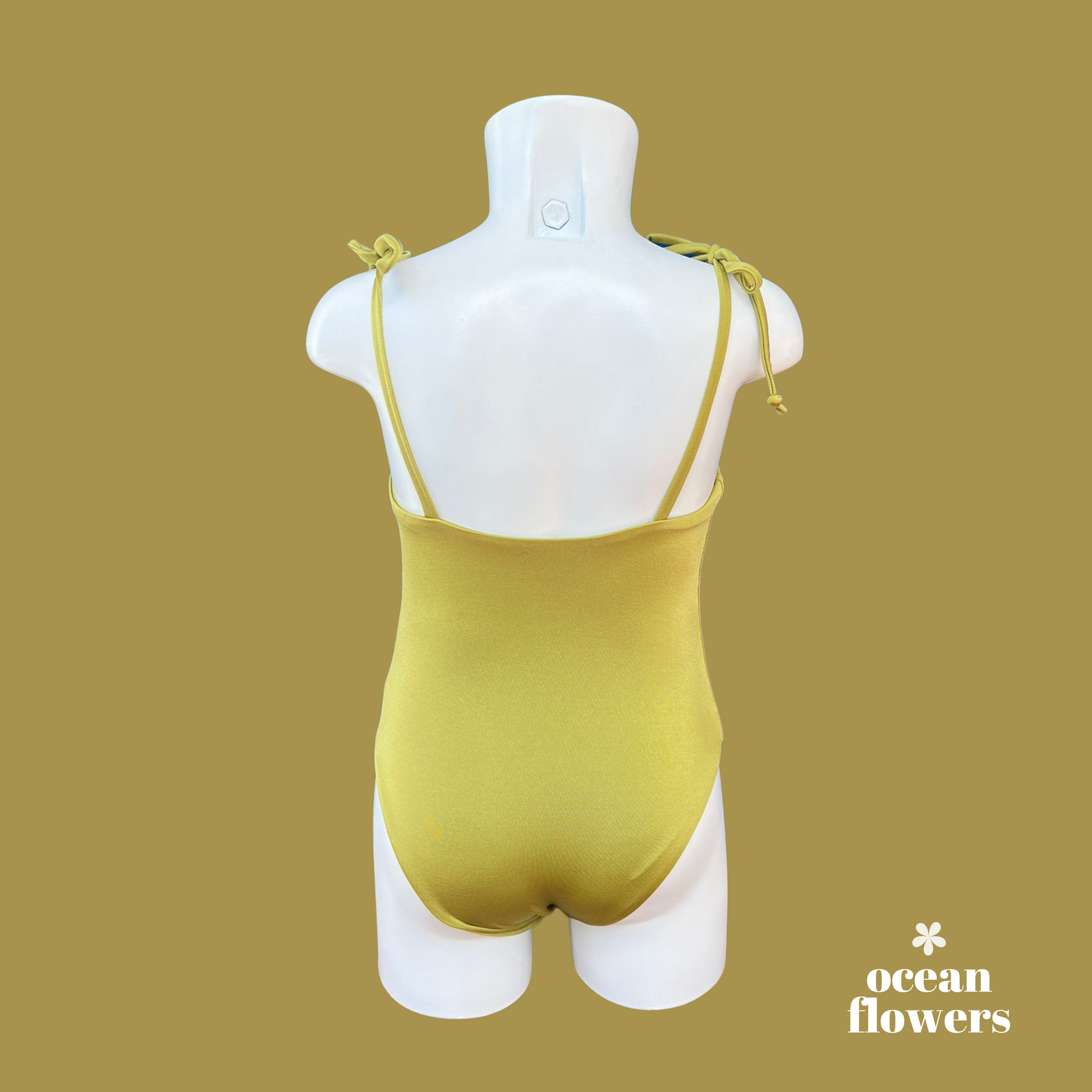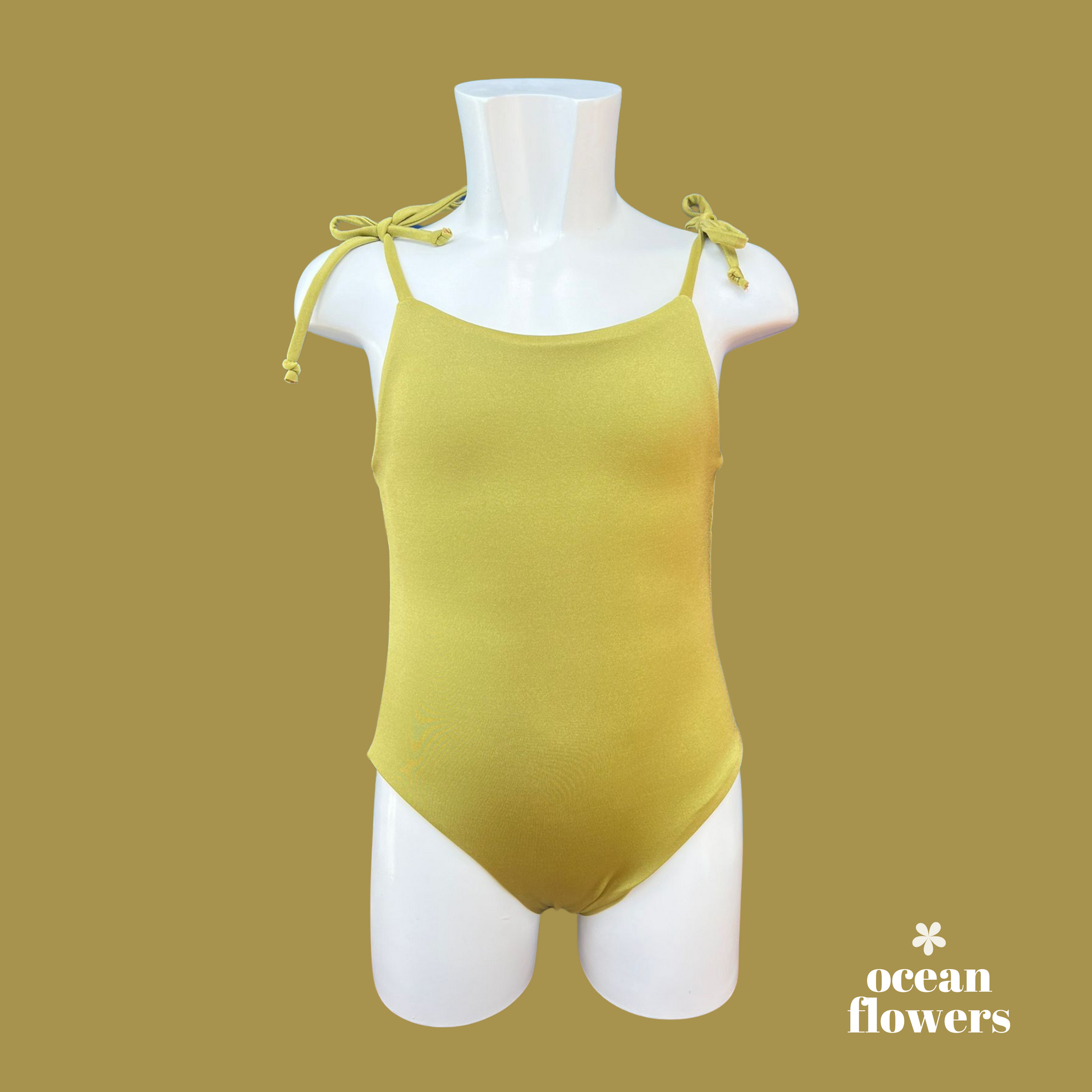 Ocean Flowers swimsuit for baby/kids in shiny green lycra.
