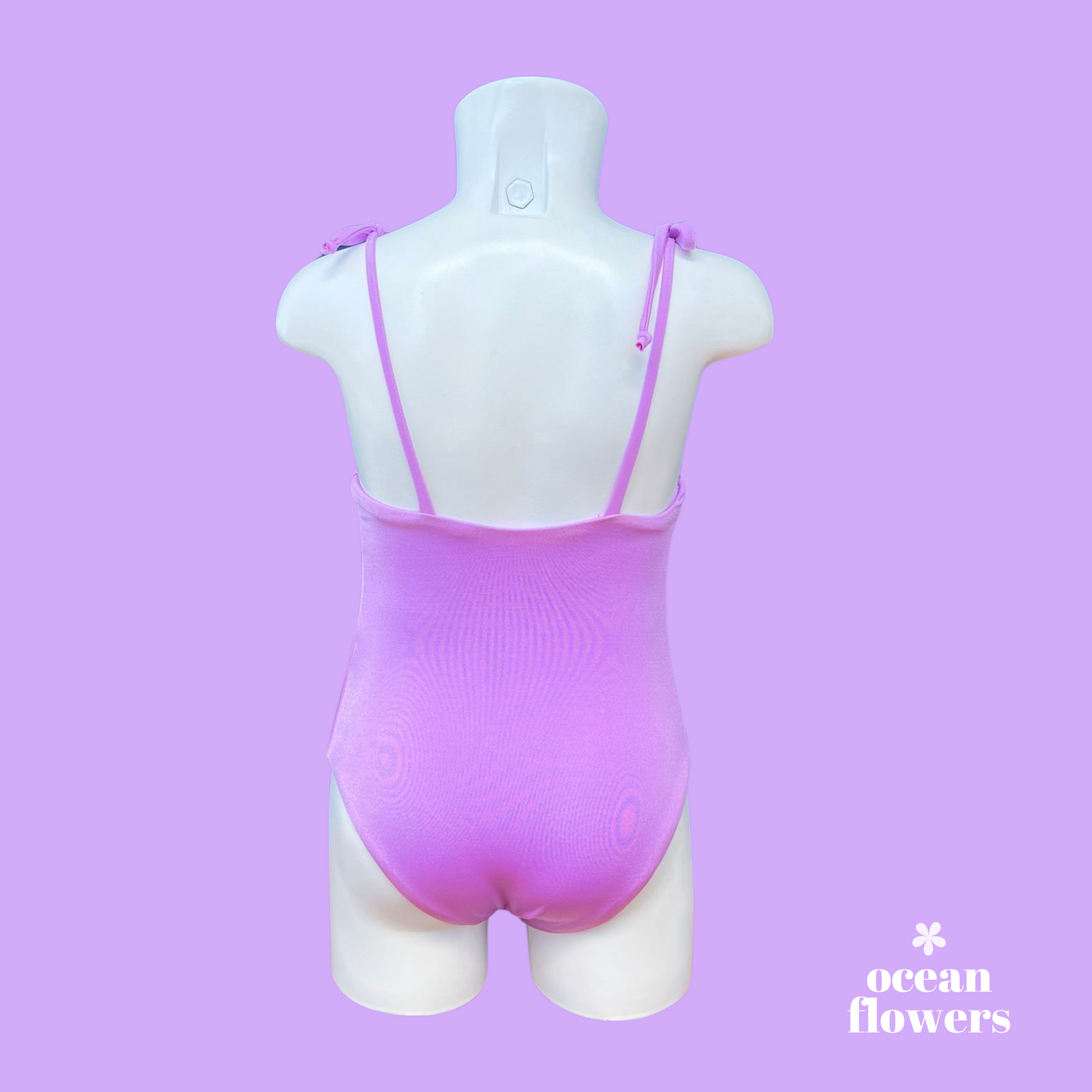 Ocean Flowers swimsuit for baby/kids in shiny lilac lycra.